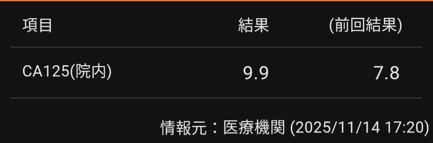 - CA125(前回):7.8