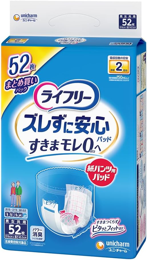 ライフリー パンツ用尿とりパッド ズレずに安心紙パンツ専用 2回吸収 ホワイト 52枚