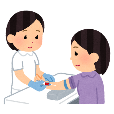 ②バイタルチェック: 血圧測定を行い、体調に問題がないか確認。