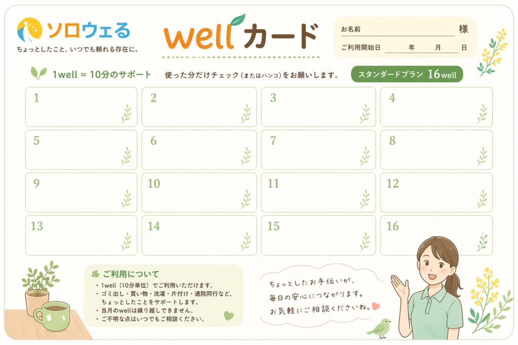 ソロウェるでは、ご利用時間を「wellカード」で分かりやすく管理しています。