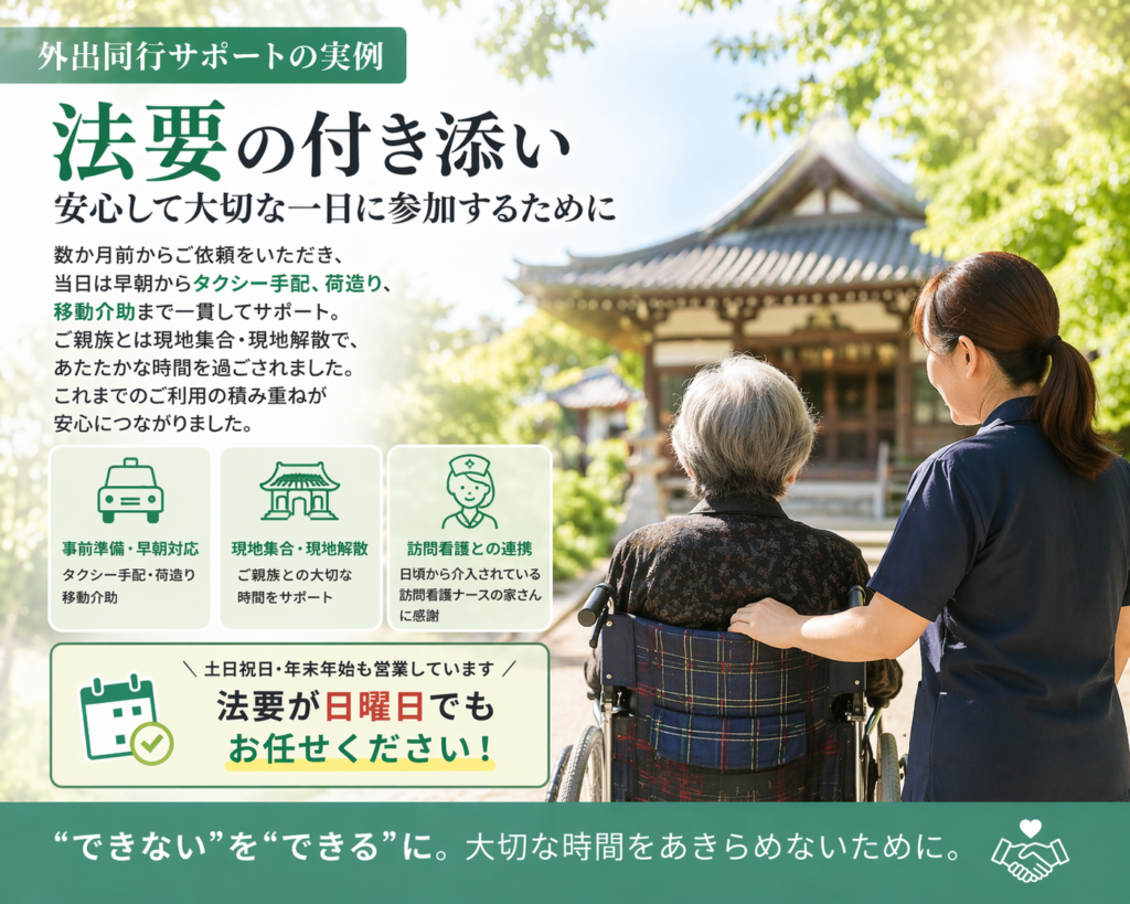 法要の付き添い・外出同行サポートの実例|安心して大切な一日に参加するために